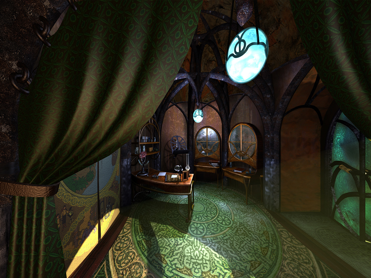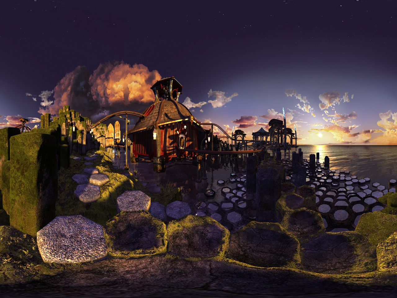 UI wise, Myst III took a half-step towards realtime 3d, by giving players freedom to look around, but not to walk - using a panoramic 2.5d game engine.